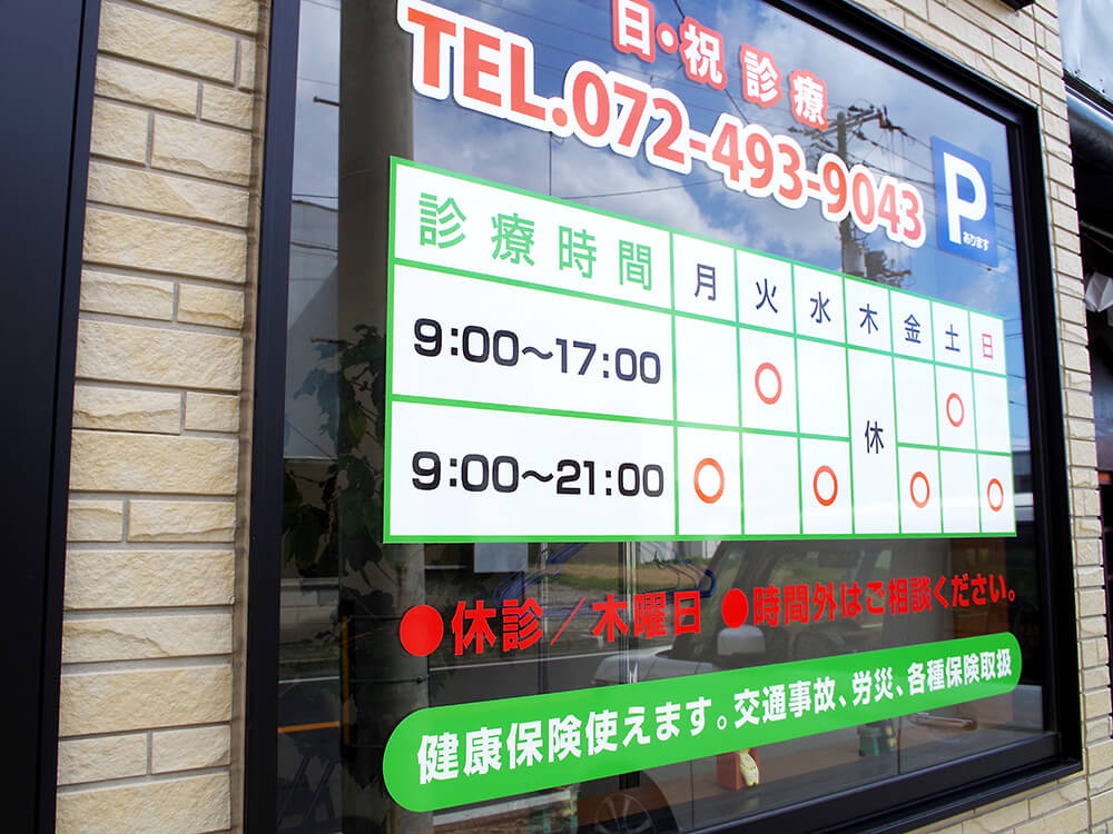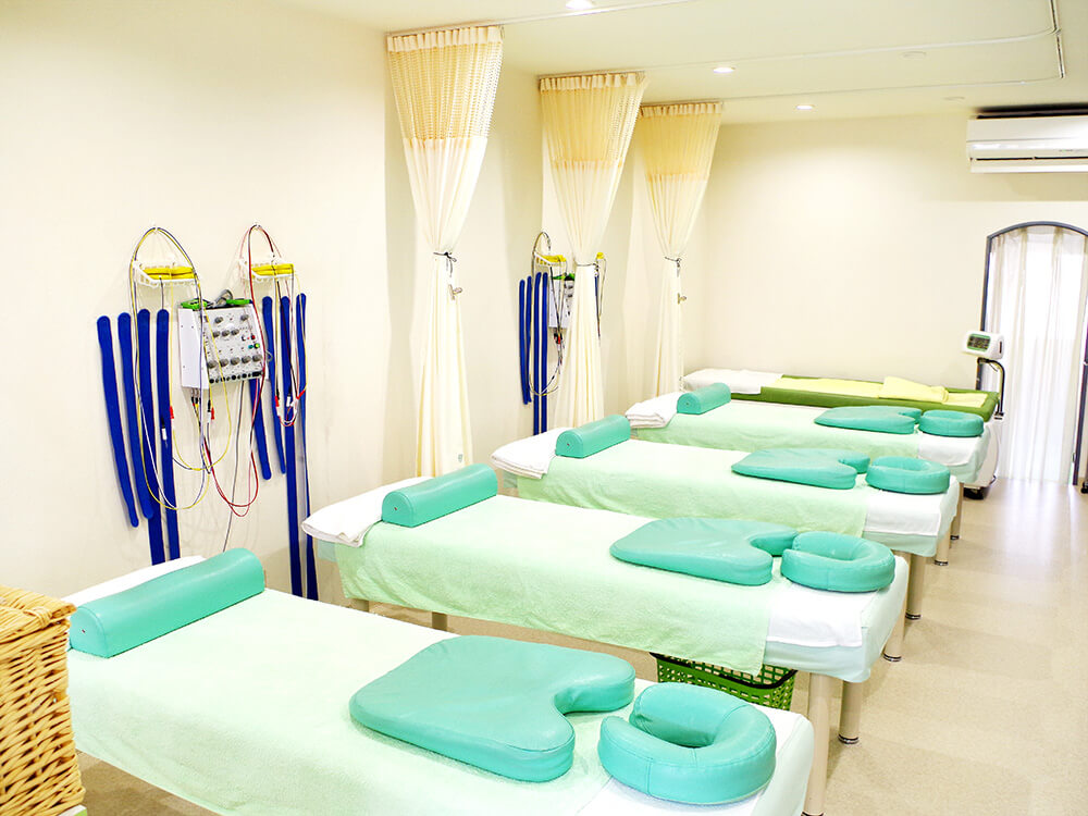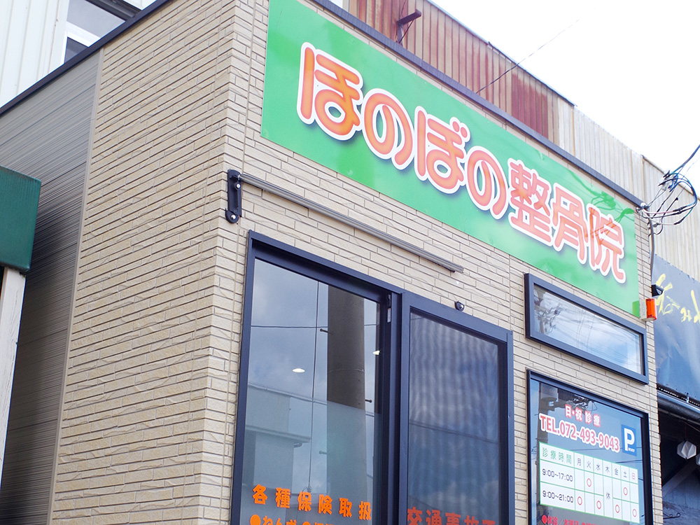 水間鉄道水間線「石材駅」から徒歩約1分になります。目印は、黄緑色の看板にオレンジの文字色で「ほのぼの整骨院」と書かれた看板です。石材駅駅からすぐにあり、お車でのご来院もしやすいように駐車場を4台設けています。院内は明るくシンプルなインテリアで統一し、清潔感のあるアットホームな空間になるようにつくっています。開放的な空間で施術を受けられるように、施術室はオープンスペースで行っています。